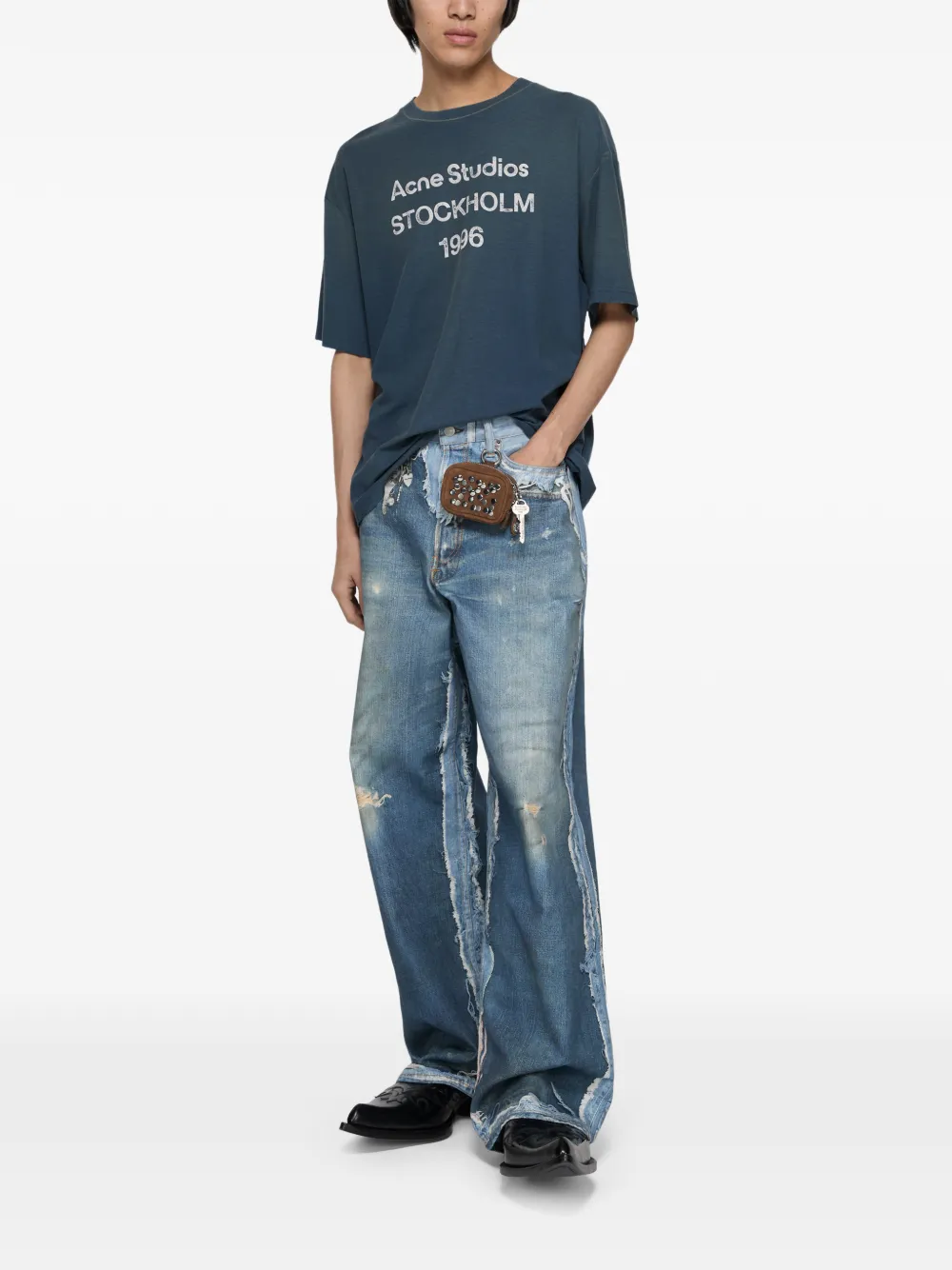 New Season Acne Studios logo-print T-shirt Imported Highlights deep blue round neck short sleeves Composition Organic Cotton 85%, Hemp 15% Washing instructions Read Manufacturer Guidelines Product IDs FARFETCH ID: 32951398 Brand style ID: CL0196