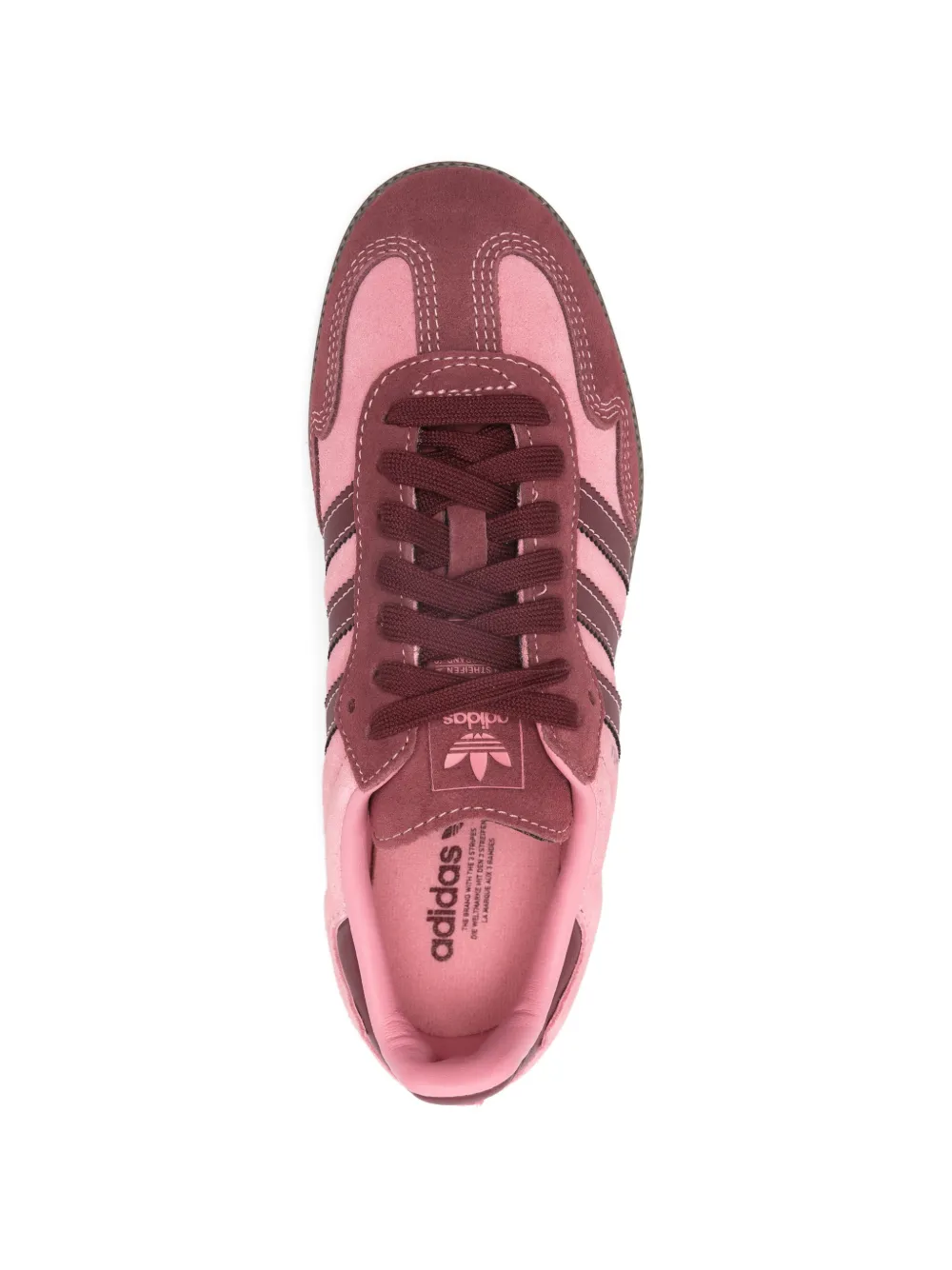 New Season adidas Samba OG sneakers Imported Highlights pink leather lace-up fastening logo detail rubber sole Composition Outer: Calf Suede 100% Lining: Fabric 100% Sole: Rubber 100% Product IDs FARFETCH ID: 33572687 Brand style ID: IH6704