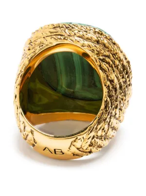 Aurelie Bidermann crystal-embellished signet ring gold-tone/forest green 18kt gold plated brass crystal embellishment engraved detail signet band Made in France Composition Malachite, 18kt Gold Plated Brass Product IDs FARFETCH ID: 18496962 Brand style ID: MIKIBA02MAMG