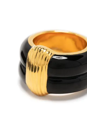 Aurelie Bidermann Katt double-layer ring black metal double layer gold-tone trim wraparound style Imported Composition Resin, Metal Wearing The model is 5 ft 10 in wearing size 50 Product IDs FARFETCH ID: 18126075 Brand style ID: KATBA01MGMM