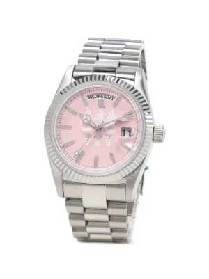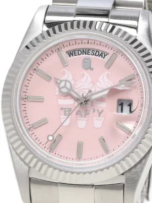 New Season BAPY BY *A BATHING APE® Type 11 40mm watch Imported Highlights pink dial automatic movement round face stainless steel bracelet fluted bezel day and date display This item comes with a standard one-year warranty from the boutique. Composition stainless steel Product IDs FARFETCH ID: 34164433 Brand style ID: BPYSS24JW0085X