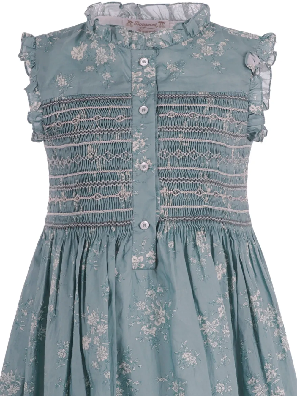 New Season Bonpoint floral-print smocked-detail dress Imported Highlights blue floral print ruffle trim button fastening smocked detail sleeveless Composition Cotton 100% Washing instructions Read Manufacturer Guidelines Product IDs FARFETCH ID: 33154559 Brand style ID: S06GDRW00023