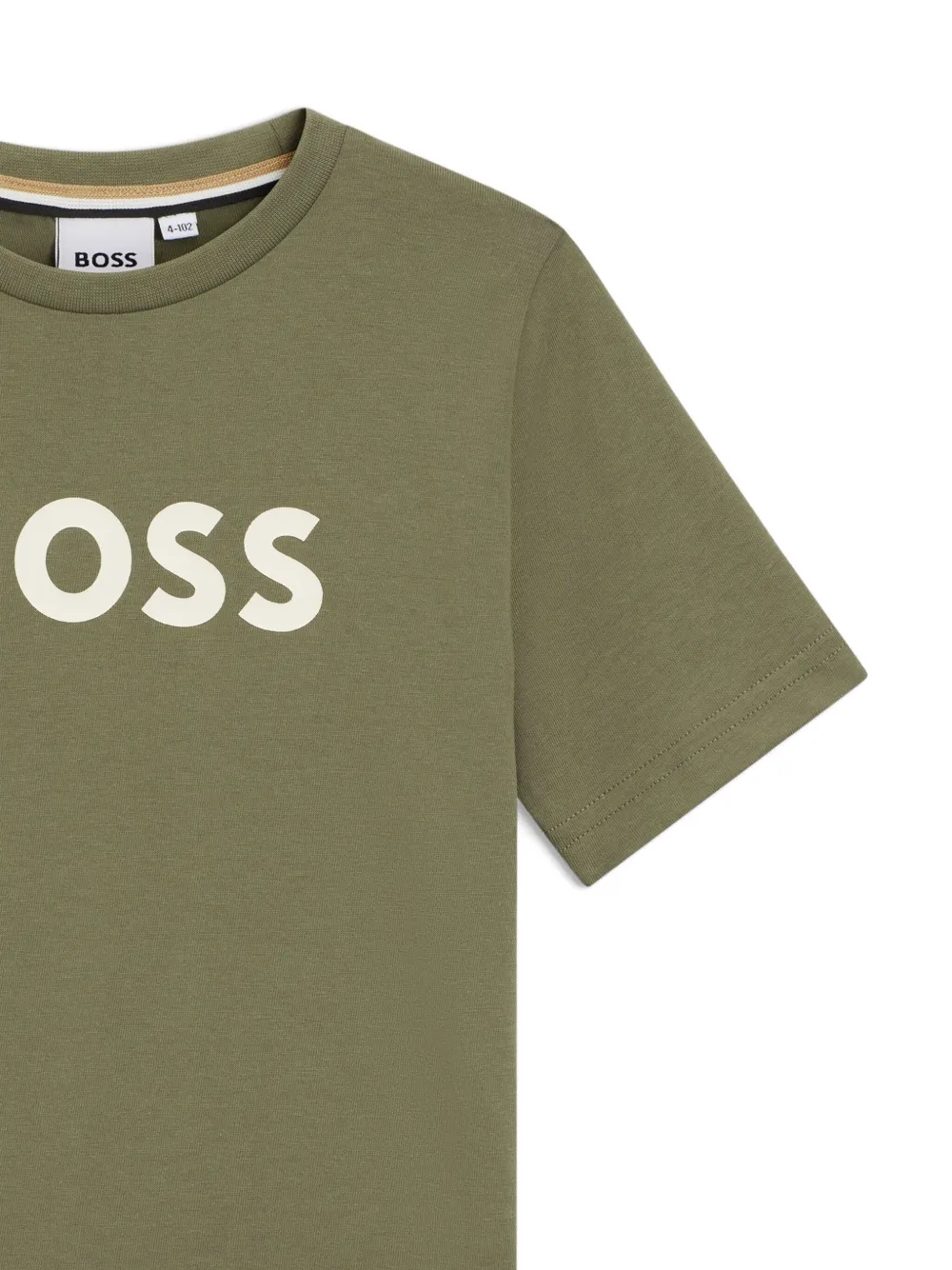 Final Sale BOSS Kidswear logo-print short-sleeves T-shirt Imported Highlights olive green short sleeves crew neck cotton logo print straight hem Composition Cotton 100% Washing instructions Read Manufacturer Guidelines Product IDs FARFETCH ID: 30080612 Brand style ID: J52711