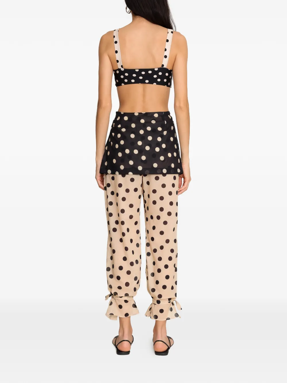 New Season Brigitte Charlotte polka-dot trousers Imported Highlights beige and black polka dot ruffle trim two-piece set Composition Cotton 100% Washing instructions Hand Wash Product IDs FARFETCH ID: 33370681 Brand style ID: CAF