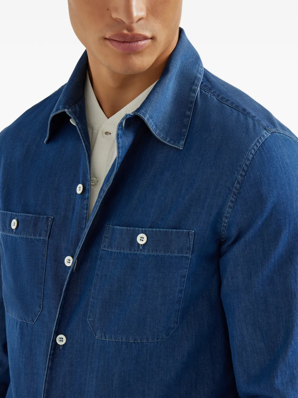 New Season Brunello Cucinelli chest-pockets long-sleeve shirt Made in Italy Highlights blue chest pockets button fastening long sleeves buttoned cuffs point collar Composition Denim 100% Washing instructions Read Manufacturer Guidelines Product IDs FARFETCH ID: 32758097 Brand style ID: MR6830658C003