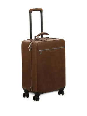 Brunello Cucinelli grained-texture luggage Made in Italy Highlights cognac brown grained texture retractable handle double top handle exterior zip pocket exterior snap-button pocket swivel wheels Composition Outer: Calf Leather 100% Product IDs FARFETCH ID: 32615474 Brand style ID: MBZIU423C6608