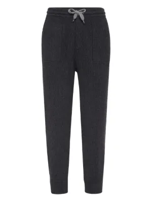 Brunello Cucinelli ribbed knit track pants Made in Italy Highlights charcoal grey ribbed knit drawstring waistband side pockets cuffed hems wool cashmere Composition Cashmere 100% Washing instructions Read Manufacturer Guidelines Product IDs FARFETCH ID: 31580998 Brand style ID: M22704849GCZA06