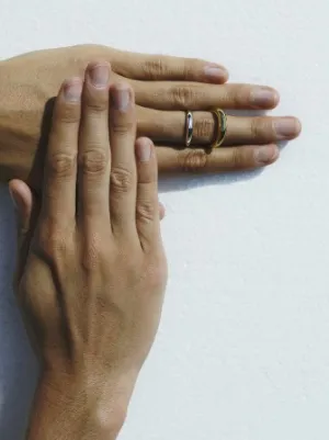 The curved double-ring construction of this Surma piece showcases Charlotte Chesnais' sculptural approach to design. A two-tone design made from sterling silver and 18kt gold plating highlights the ring's architecture.