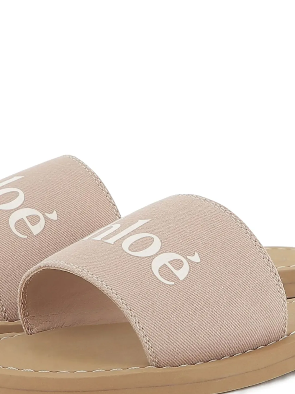 Final Sale Chloé Kids logo-print sandals Imported Highlights light pink logo print to the front open toe design flat sole Composition Lining: Sheepskin 100% Outer: Fabric 100% Sole: Polyethylene vinyl acetate (PEVA) 100% Washing instructions Machine Wash Product IDs FARFETCH ID: 30082078 Brand style ID: C20693