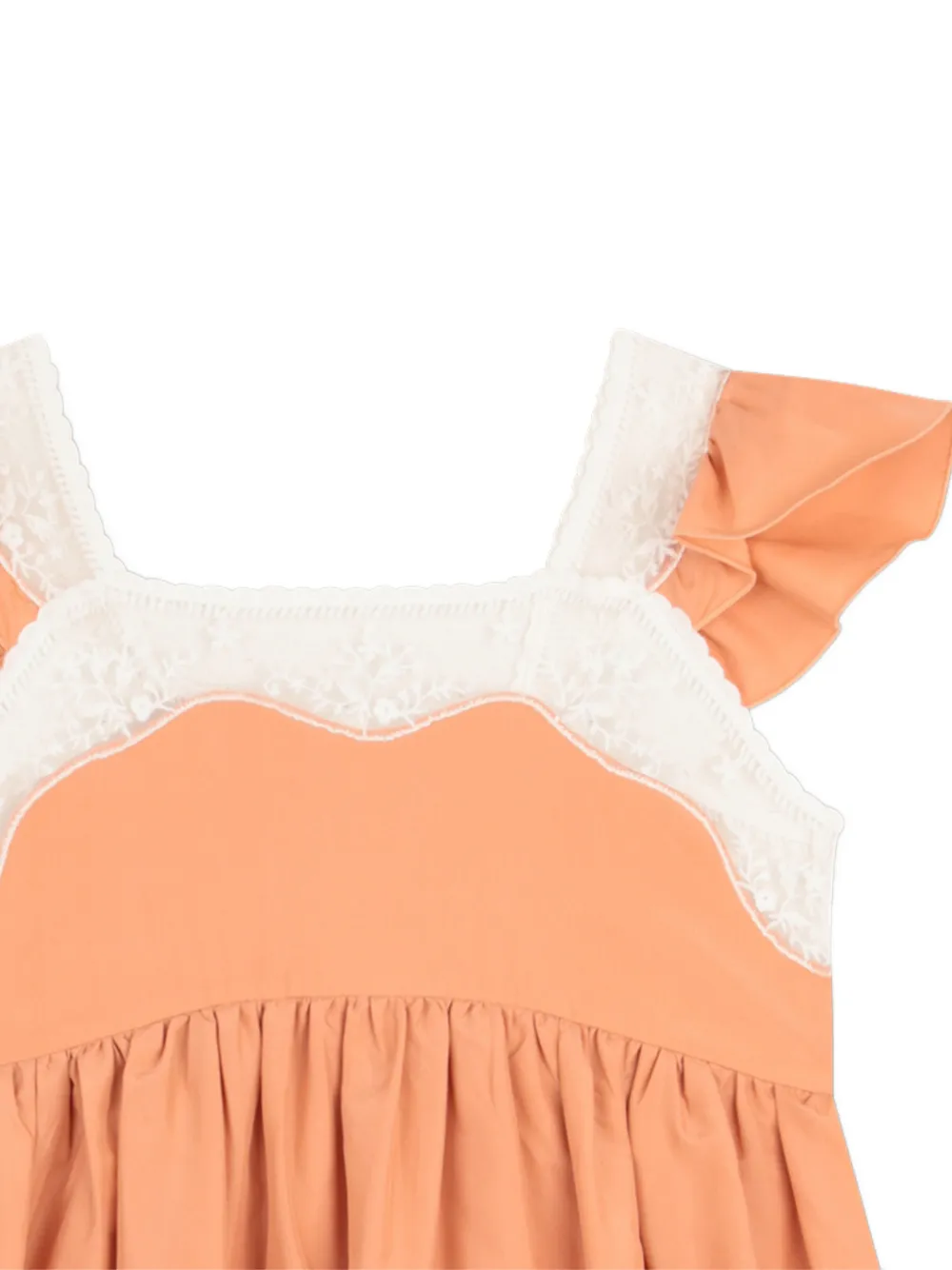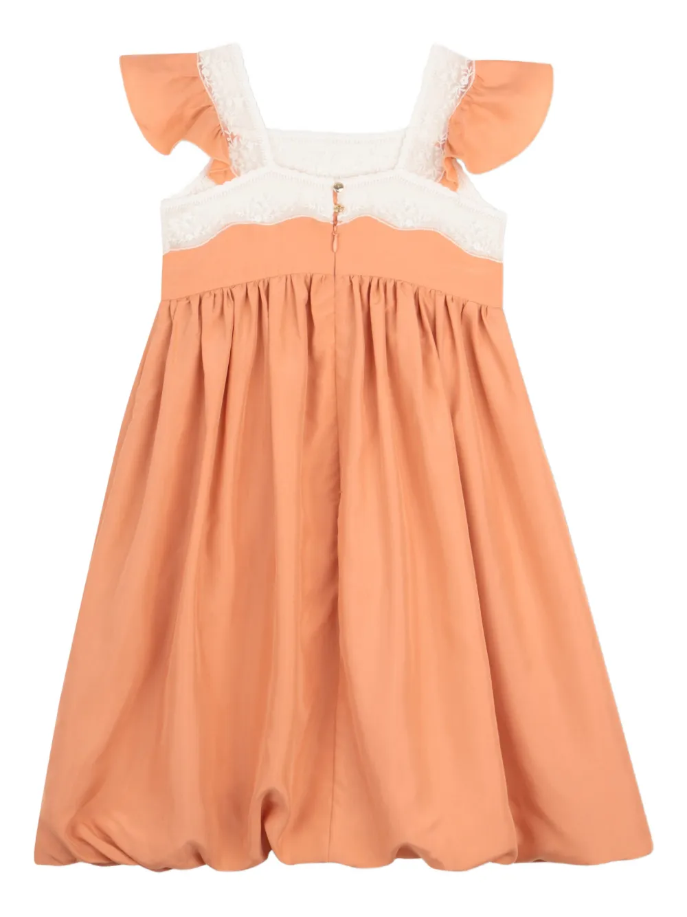 New Season Chloé Kids ruffled lace-detail dress Imported Highlights coral orange lace trim ruffled sleeves rear zip fastening Composition Lining: Cotton 100% Outer: Silk 100% Washing instructions Do Not Wash/Do Not Dry Clean Product IDs FARFETCH ID: 32983637 Brand style ID: C20809