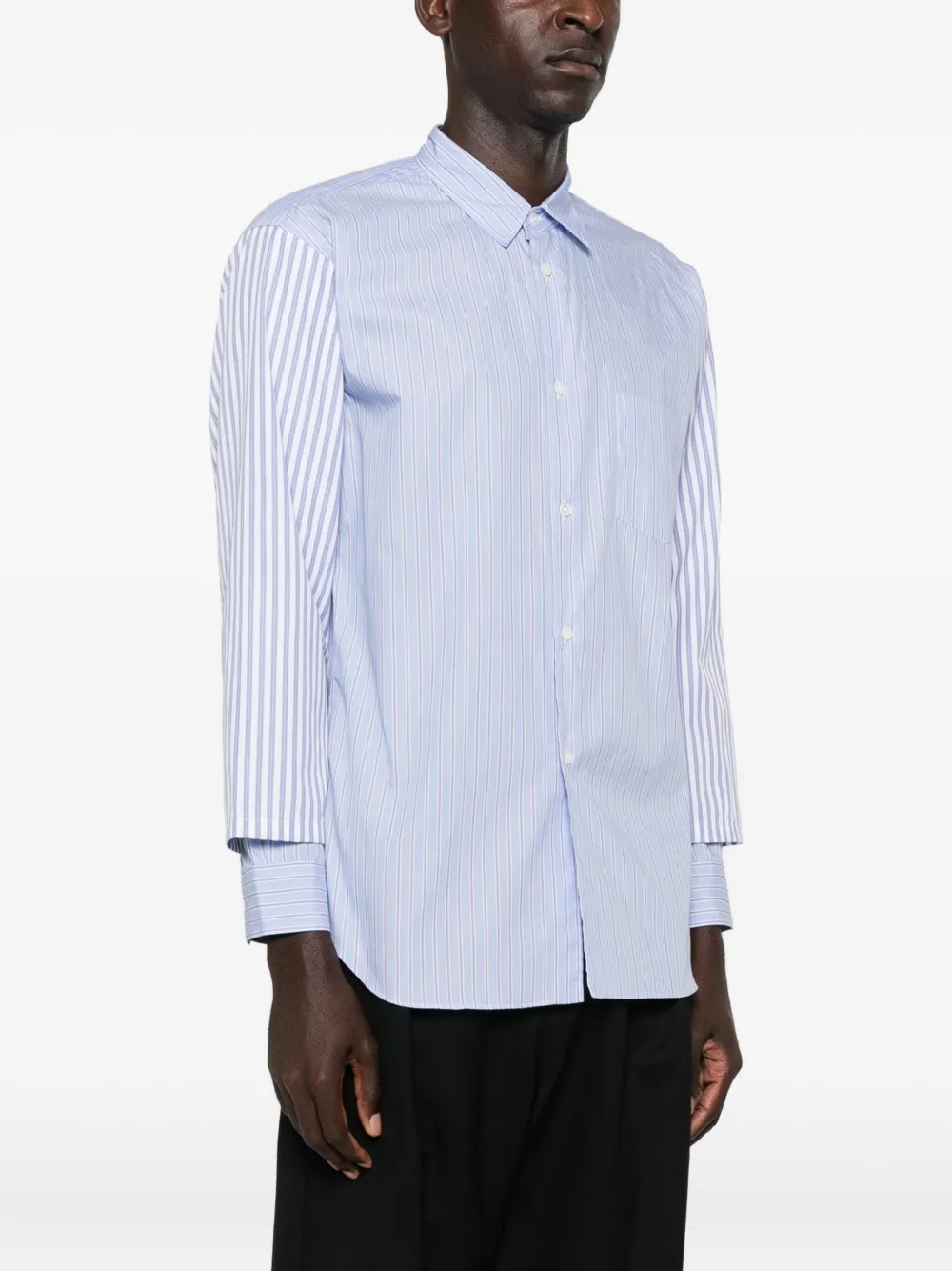 Comme Des Garçons Shirt striped layered-sleeve shirt Made in France Highlights light blue striped pattern layered sleeves button fastening long sleeves chest patch pocket Composition Cotton 100% Washing instructions Read Manufacturer Guidelines Wearing The model is 6 ft 2 in. Product IDs FARFETCH ID: 30845612 Brand style ID: FPB039051