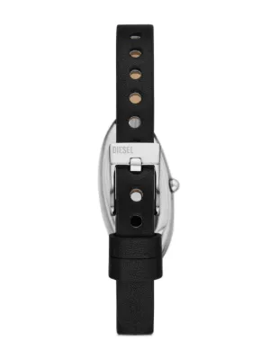 Diesel D-Era 19mm Imported Highlights 19mm stainless steel case quartz movement Oval D logo plaque baton dial baton hands screw-down crown leather strap pin-buckle fastening Composition Steel, Calf Leather Product IDs FARFETCH ID: 25747401 Brand style ID: DZ561200QQQ