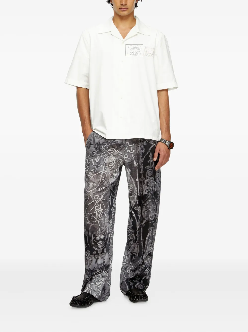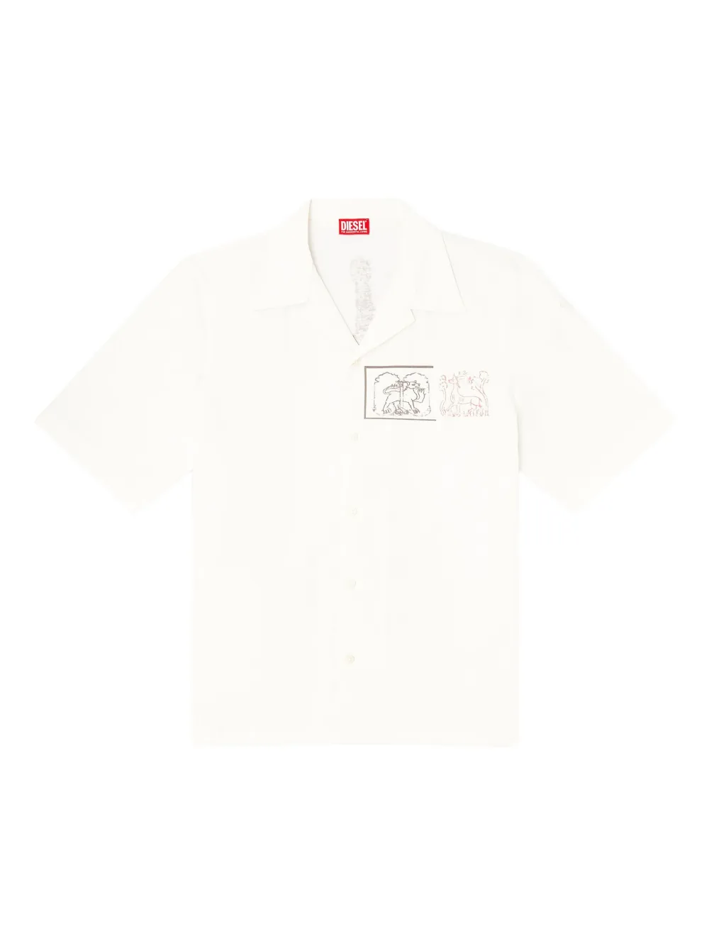 Diesel illustrated short-sleeve shirt Imported Highlights white button fastening short sleeves classic collar straight hem Composition Cotton 100% Washing instructions Read Manufacturer Guidelines Product IDs FARFETCH ID: 29551726 Brand style ID: A184700HGBS