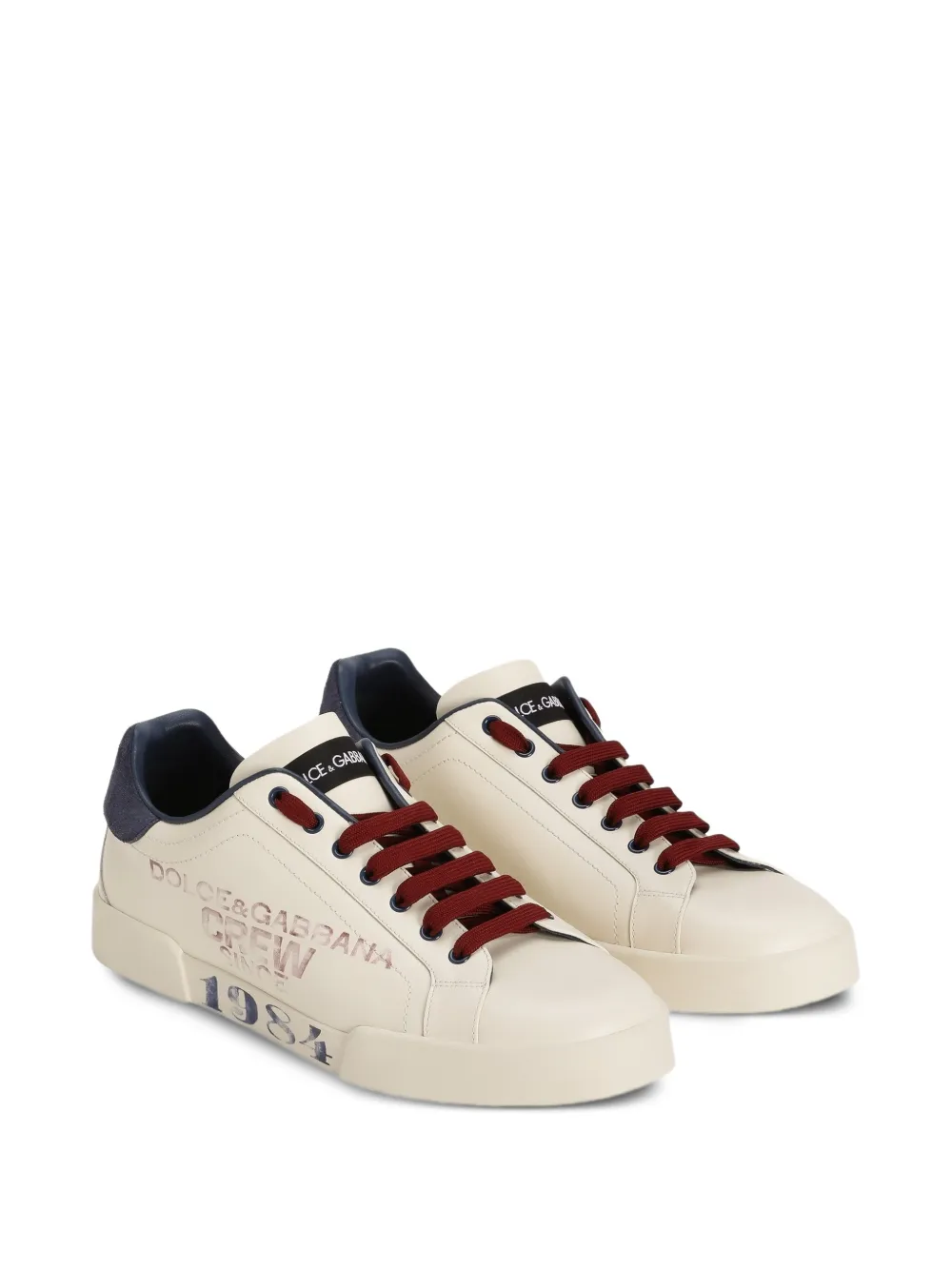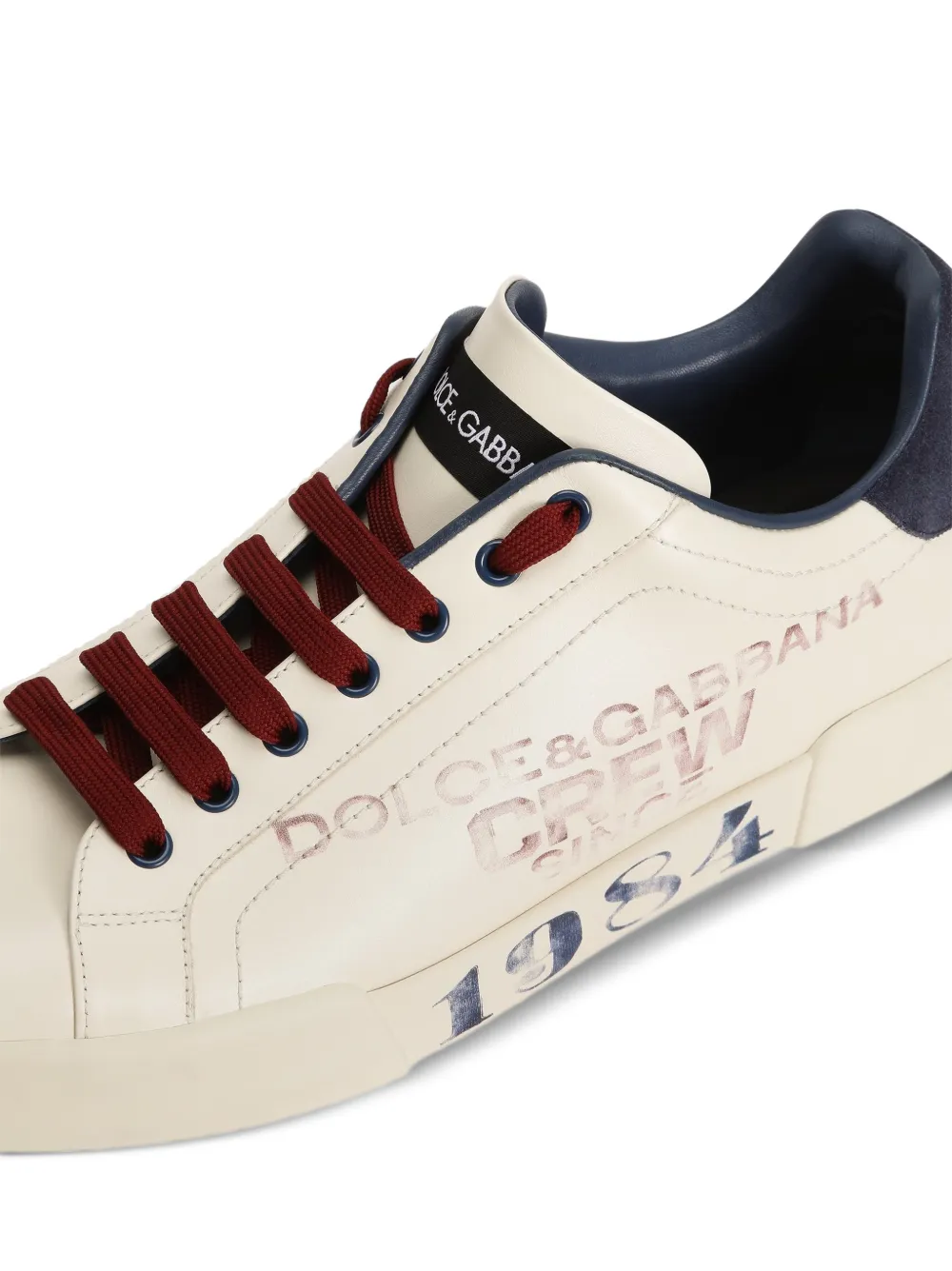 New Season Dolce & Gabbana printed-logo lace-up sneakers Made in Italy Highlights beige logo print lace-up fastening round toe rubber sole Composition Outer: Calf Leather 100% Lining: Lambskin 75%, Cotton 18%, Goat Skin 7% Sole: Rubber 100% Product IDs FARFETCH ID: 32464395 Brand style ID: CS2398A0191