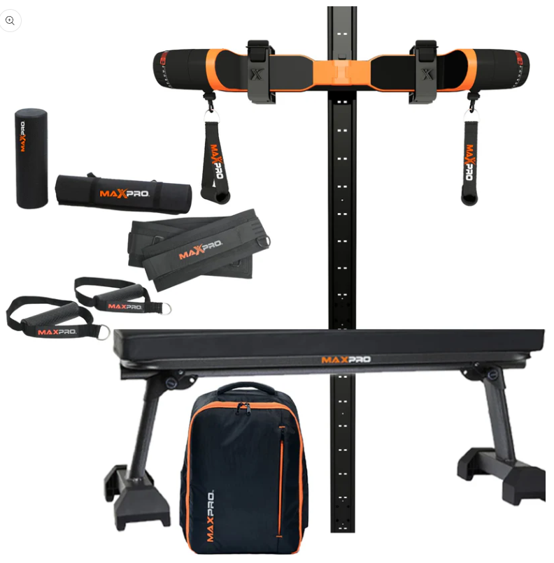 What's Included: MAXPRO SmartConnect, SlimLine Wall Track, Foldable Bench, and MAXPACK Backpack.