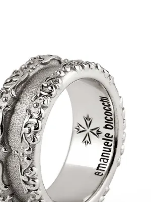 Exclusive Emanuele Bicocchi Arabesque double band ring Made in Italy Highlights silver-tone sterling silver engraved logo textured finish slip-on style Composition Sterling Silver Product IDs FARFETCH ID: 25635182 Brand style ID: KLA5
