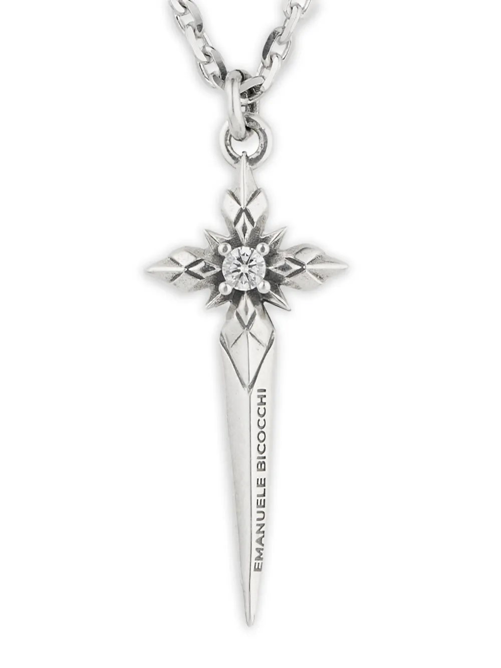 Emanuele Bicocchi Stella Ventis dagger necklace Made in Italy Highlights silver-tone dagger pendant chain star detail Composition Sterling Silver, Zirconia Washing instructions Read Manufacturer Guidelines Product IDs FARFETCH ID: 32354496 Brand style ID: ANASPCN1