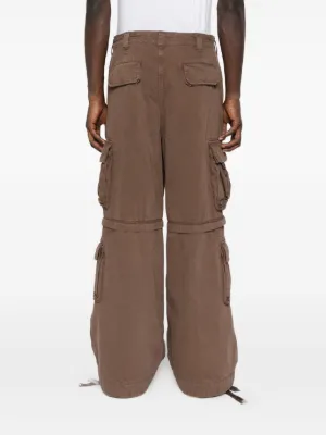ERL layered cargo trousers Imported Highlights brown side cargo pockets layered design drawstring hem straight leg panelled design Composition Cotton 100% Washing instructions Read Manufacturer Guidelines Wearing The model is 5 ft 10 in wearing size M Product IDs FARFETCH ID: 31901300 Brand style ID: ERL11P006