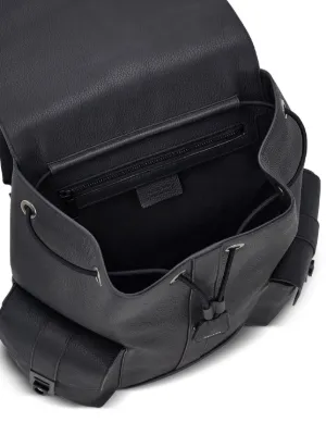 Ferragamo drawstring flap backpack Made in Italy Highlights black hammered leather drawstring closure flap pocket adjustable padded shoulder straps buckle detailing Composition Outer: CALFSKIN 100% Product IDs FARFETCH ID: 30979589 Brand style ID: 784954