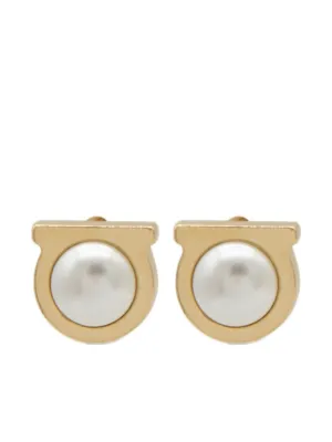 Ferragamo Gancini stud earrings Made in Italy Highlights gold-tone faux-pearl detailing post-back fastening for pierced ears These earrings come as a pair. Composition glass, Brass Product IDs FARFETCH ID: 27710936 Brand style ID: 696454
