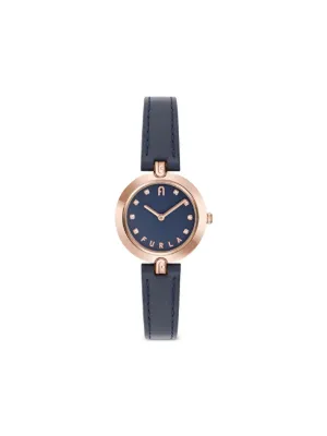 Furla Logo Links 28mm Imported Highlights blue dial round case shape 28mm case size i crystal embellishment quartz movement rose gold-tone crown This item comes with a standard one-year warranty from the boutique. Composition Mineral Glass, Calf Leather, Rose Gold Plated Steel Product IDs FARFETCH ID: 30787883 Brand style ID: WW00006013L3