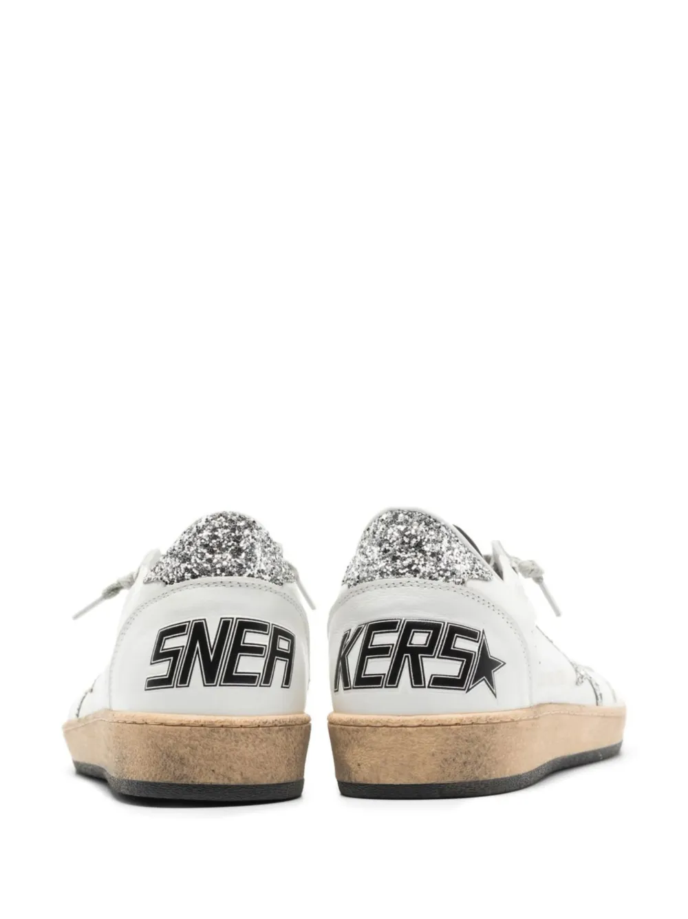 With an '80s-inspired silhouette, Golden Goose's Ball Star sneakers offer a basketball-style aesthetic. This pair boasts a further creative touch thanks to silver-tone glitter detailing and the brand's signature star patch.