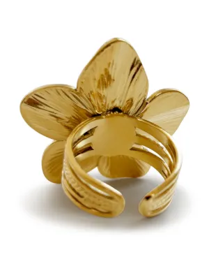 HZMER JEWELLERY floral-detail ring Imported Highlights gold-tone stainless steel polished finish floral detail engraved detail open cuff design Composition stainless steel Product IDs FARFETCH ID: 24112179 Brand style ID: MCMCFRG121
