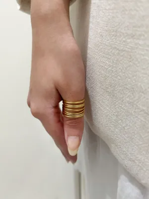 HZMER JEWELLERY hammered-effect ring Imported Highlights gold-tone stainless steel hammered-effect finish multi-band design open cuff design Composition stainless steel Product IDs FARFETCH ID: 24113133 Brand style ID: MCDSRG110