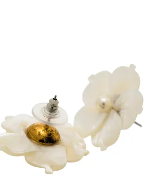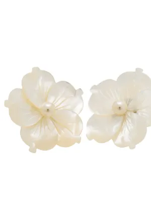 No one actually has the time to stop and smell the flowers. So why not carry these mother-of-pearl flower stud earrings from Jennifer Behr with you at all times? In full bloom all year round.