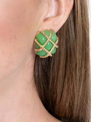 Kenneth Jay Lane quilted jade clip-on earrings Imported Highlights jade green quilted design gold-tone rope frame clip-on fastening oval shape cabochon jade stones These earrings come as a pair. Composition Gold Plated Metal Product IDs FARFETCH ID: 30881268 Brand style ID: 4080EJ