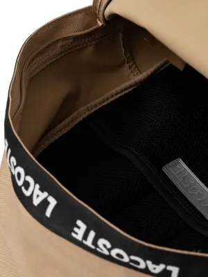 Lacoste Neocroc logo-band backpack Imported Highlights beige crocodile emblem logo band drawstring fastening adjustable shoulder straps main compartment Composition Recycled Fabric 100% Product IDs FARFETCH ID: 29565188 Brand style ID: NU4685NZ