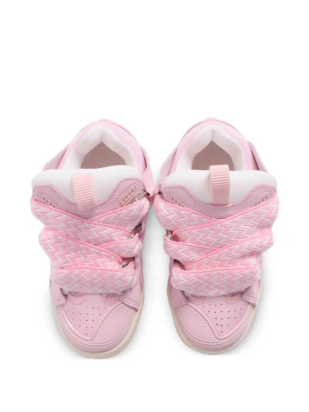 New Season Lanvin Enfant low sneakers Imported Highlights pink leather pull-tab zigzag laces perforated toe rubber sole Composition Outer: Calf Leather 100%, Fabric 100% Lining: Fabric 100% Sole: Rubber 100% Product IDs FARFETCH ID: 33545003 Brand style ID: N3046544F