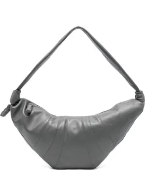 LEMAIRE Croissant knot lambskin shoulder bag Imported Highlights grey lambskin leather curved shape strap knot-detail zip fastening panelled design Although it is new and unworn, due to the specialised recovery and tanning process that Lemaire uses for its leather goods, the texture of this piece will display signs of the material's natural grain, softness and creases. Composition Outer: Lambskin 100% Lining: Cotton 100% Washing instructions Do Not Wash/Do Not Dry Clean Wearing The model is 6 ft 2 in wearing size OS Product IDs FARFETCH ID: 30954850 Brand style ID: BG0000LL095