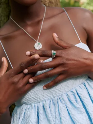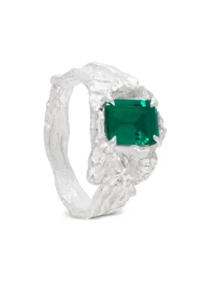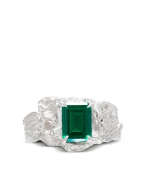 LOVENESS LEE Shimeji ring Made in United Kingdom Highlights silver-tone recycled silver hammered-effect finish emerald claw/prong setting Composition Recycled Silver, Emerald Product IDs FARFETCH ID: 23777032 Brand style ID: SHIMEJIEMERALDARGENTIRING
