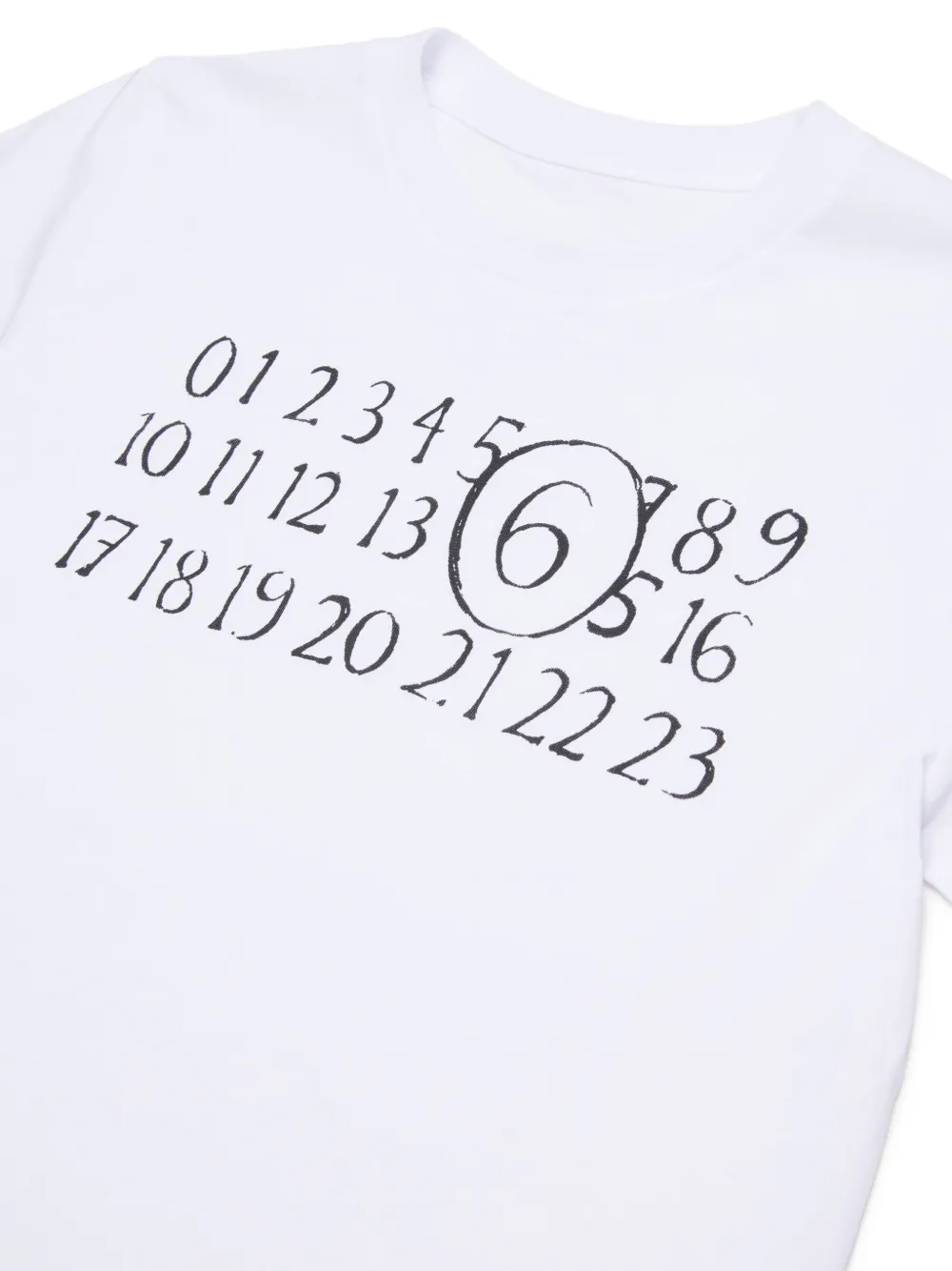 New Season MM6 Maison Margiela Kids numeric-print T-shirt Imported Highlights white graphic print round neck short sleeves Composition Cotton 100% Washing instructions Read Manufacturer Guidelines Product IDs FARFETCH ID: 32486322 Brand style ID: M61020MM02Y
