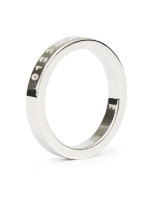 New Season MM6 Maison Margiela Numeric engraved polished ring Made in Italy Highlights silver-tone polished finish engraved logo signature numbers motif flat band Composition Brass Product IDs FARFETCH ID: 22457293 Brand style ID: SM6UQ0059P6469