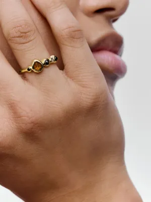 Monica Vinader Siren ring Imported Highlights gold-tone inset gemstones polished finish engraved logo Composition Crystal, Tiger eye, Onyx, 18kt Gold Vermeil Product IDs FARFETCH ID: 28288530 Brand style ID: GPSIRENTONALHALFETERNITYRINGTIGERSEYE