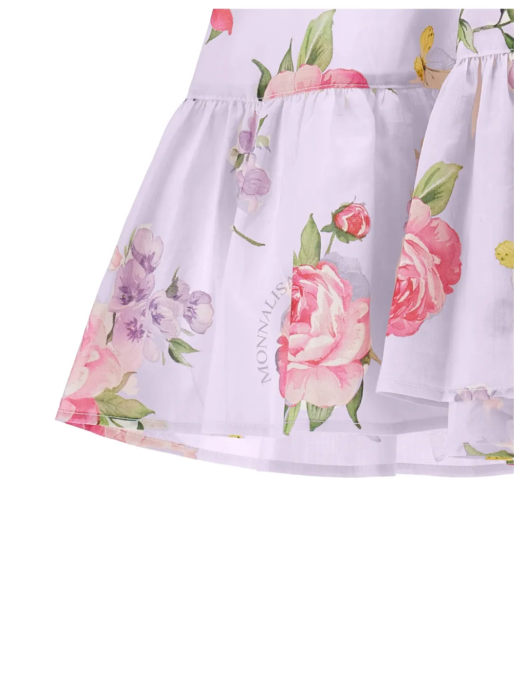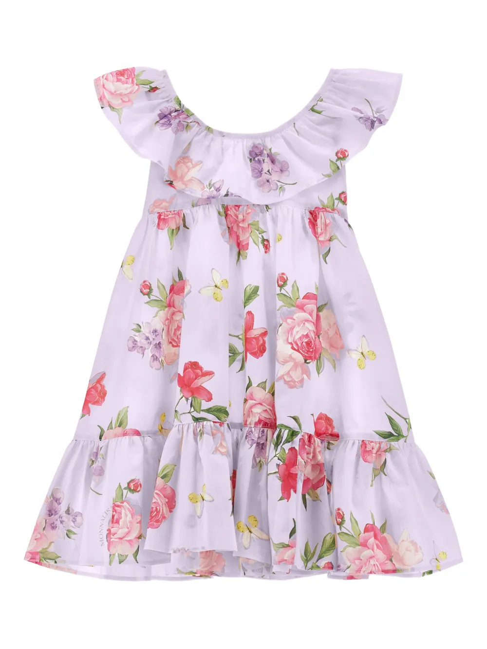 New Season Monnalisa ruffled-trim floral-pattern dress Imported Highlights purple floral print ruffled trim tiered skirt Composition Cotton 100% Washing instructions Read Manufacturer Guidelines Product IDs FARFETCH ID: 32754508 Brand style ID: 19G9027045