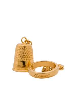 Final Sale Moschino thimble-charm ring Made in Italy Highlights gold-tone slip-on style engraved logo chainmail detailing flat band Composition Zamak, Brass Product IDs FARFETCH ID: 29995768 Brand style ID: A91148487