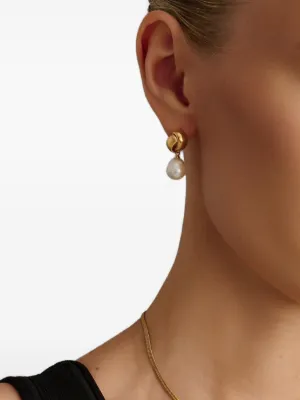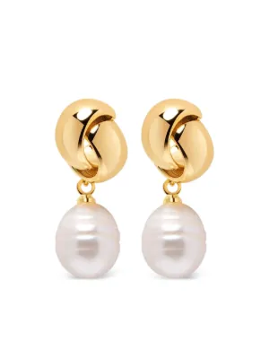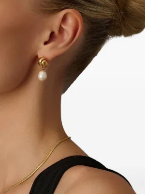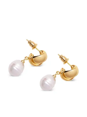 gold knot pearl earrings