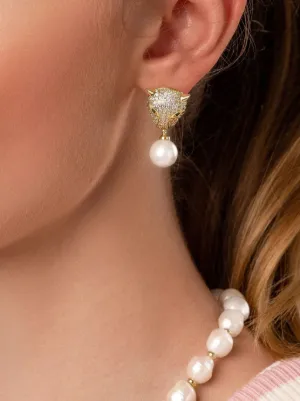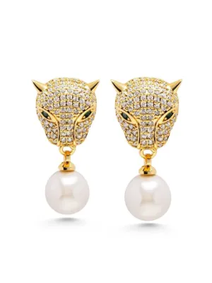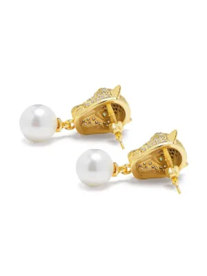 gold plated Panther pearl drop earrings
