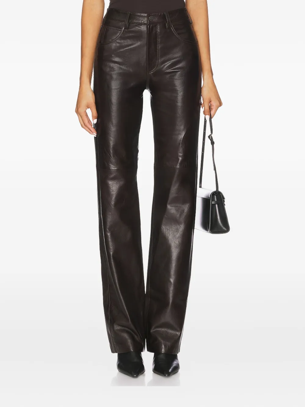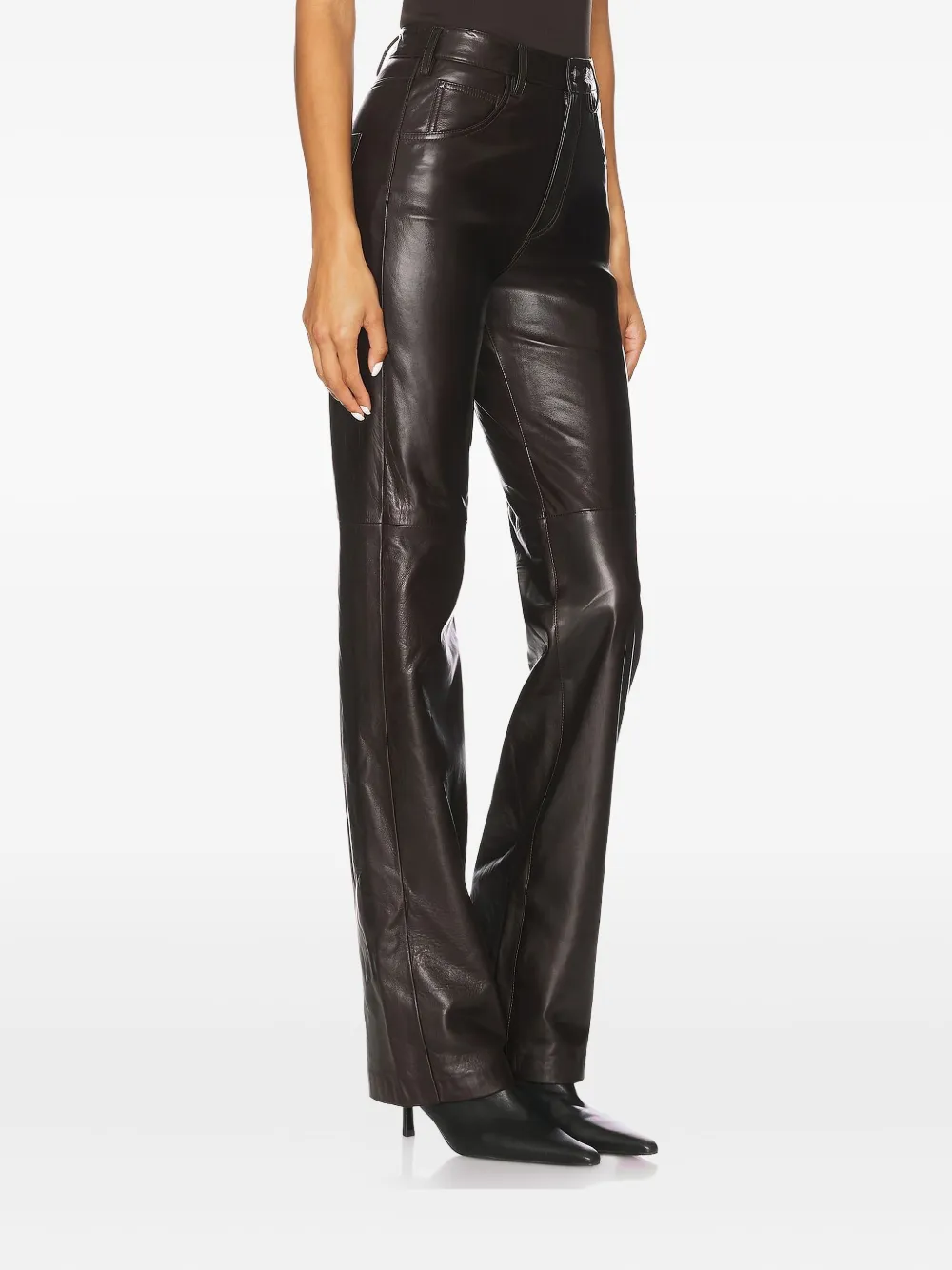 Nili Lotan Joan leather trousers Imported Highlights dark brown panelled design belt loops front pockets back pockets button closure Composition Leather 100% Washing instructions Read Manufacturer Guidelines Product IDs FARFETCH ID: 31845668 Brand style ID: 12827L174