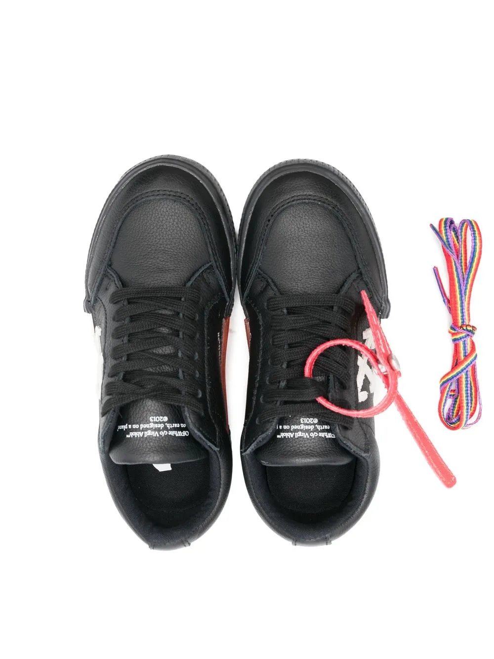 Off-White Kids Vulcanized sneakers black/white calf leather signature Arrows motif diagonal stripe print round toe front lace-up fastening branded insole flat rubber sole Imported Composition Outer: Calf Leather 100%, Fabric 100% Sole: Rubber 100% Lining: Fabric 100% Product IDs FARFETCH ID: 19149555 Brand style ID: OBIA003C99LEA0011001