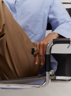 Paola Sighinolfi Bosco ring Imported Highlights gold-tone ribbed detailing signet band claw/prong setting Composition 18kt Gold Plated Pewter, Resin Product IDs FARFETCH ID: 27595375 Brand style ID: PQC22BN