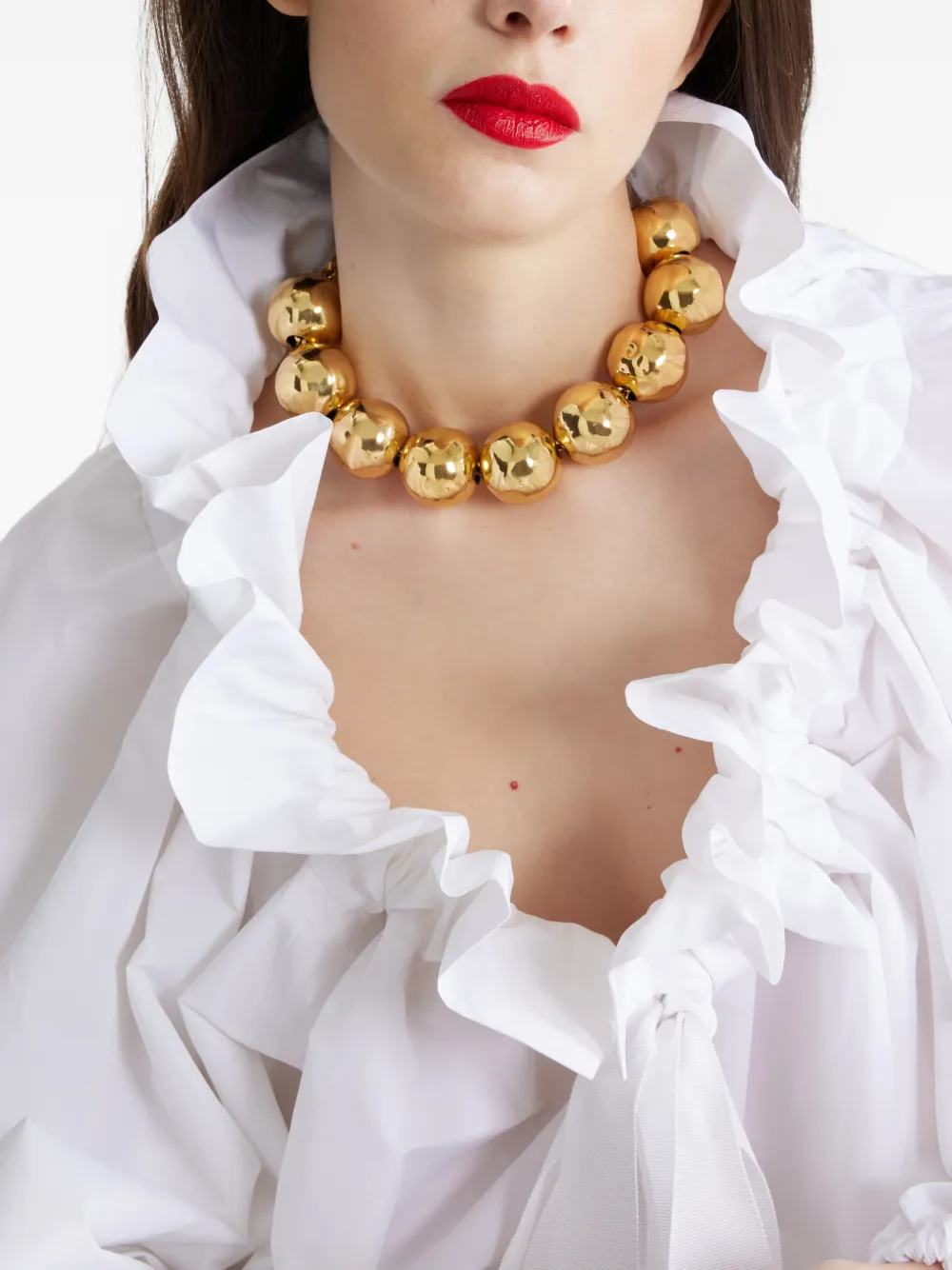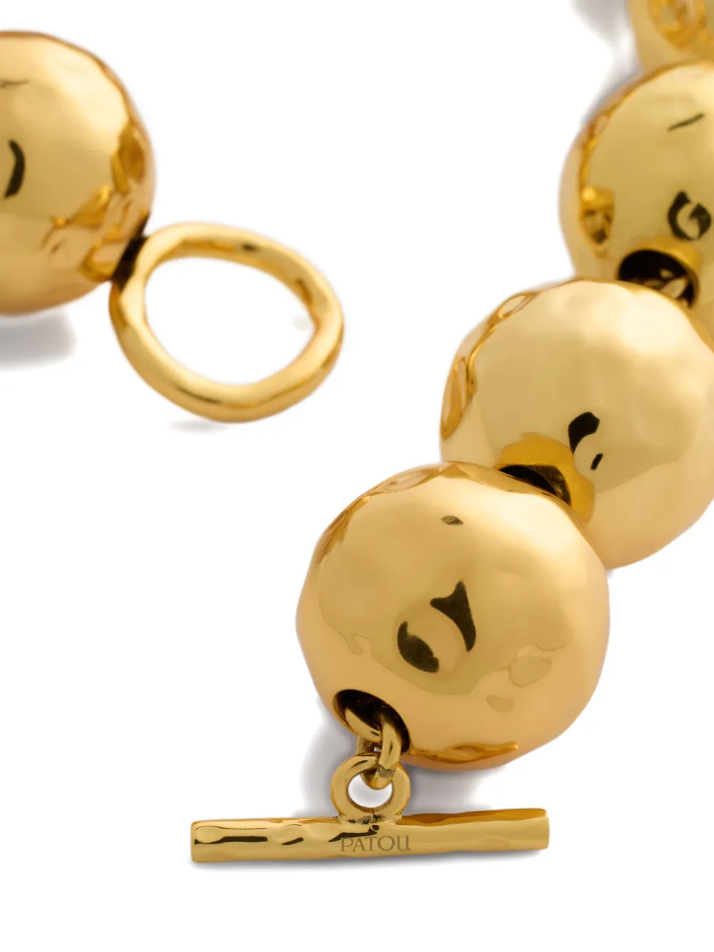 Runway Patou Sphere hammered necklace Imported Highlights gold-tone circular design brass hammered-effect finish polished finish T-bar fastening This piece comes complete with a protective dust bag. Composition Gold Plated Brass Product IDs FARFETCH ID: 23866226 Brand style ID: JW1301002299G