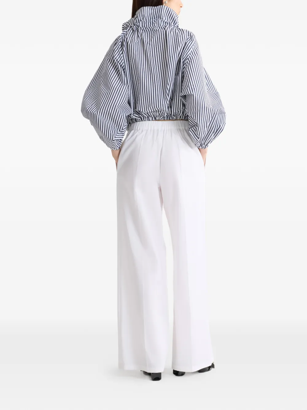 Runway Patou striped ruffled-neck bow-tie blouse Imported Highlights dark blue and white striped pattern black bow ruffled neck long sleeves elasticated hem Composition Polyester 100% Washing instructions Hand Wash Product IDs FARFETCH ID: 33195864 Brand style ID: TO17002495970