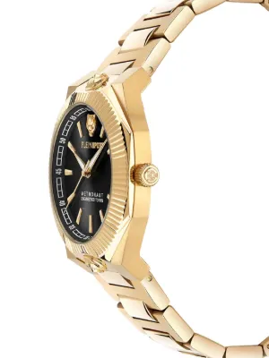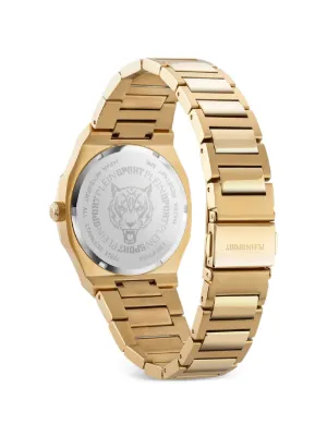Plein Sport Gold Black Watch Imported Highlights gold black dial indices octagonal case fluted bezel lion head detail analogue quartz movement Composition stainless steel Product IDs FARFETCH ID: 33051383 Brand style ID: PSDGA0925