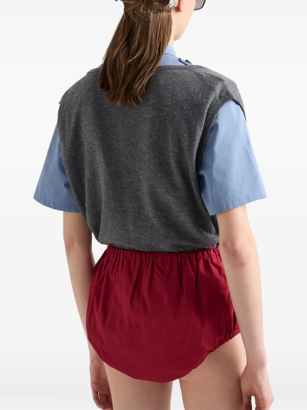 New Season Prada cashmere V-neck vest Highlights grey V-neck cashmere Composition Cashmere 100% Washing instructions Read Manufacturer Guidelines Product IDs FARFETCH ID: 33886690 Brand style ID: P29C12SOOO19VK