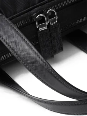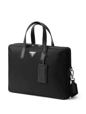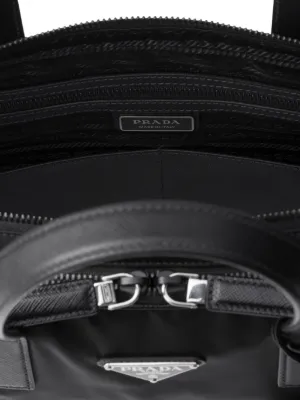 Prada's triangle logo plaque balances the brand's history, using the original logo from 1919, with a contemporary twist; a geometric silver-tone hardware base. Placed at the front of this laptop bag, an opulent and timeless piece is created.