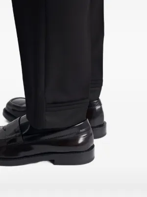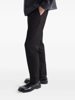 Prada triangle-logo wool trousers Highlights black wool hook-and-button fastening side slant pockets zipper pocket back welt pocket Composition Wool 100% Washing instructions Read Manufacturer Guidelines Product IDs FARFETCH ID: 31074603 Brand style ID: UP0375SOOO155E